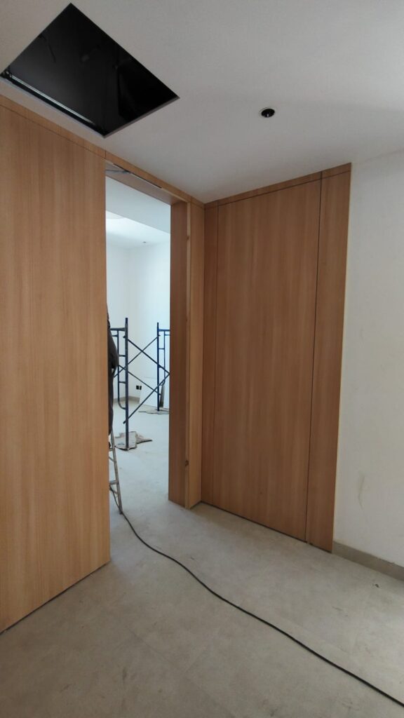 - Premium materials were selected to ensure strength and longevity, making the door resilient to daily use while maintaining elegance. Hardware elements, including handles and hinges, were integrated seamlessly to complement the design, while customizations added a unique touch tailored to the client’s style. The installation process was executed with precision, ensuring smooth operation and a perfect fit within the architectural context of the home.